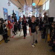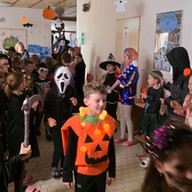 Dnešní den se ve škole proměnil v pestrobarevný karneval plný smíchu, strašidel a třpytivých pavouků! Chodbami se procházely čarodějnice s kouzelnými klobouky, usměvaví kostlivci, malí zombíci, dýňové princezny i pavoučí víly. Každá maska byla originální a promyšlená.